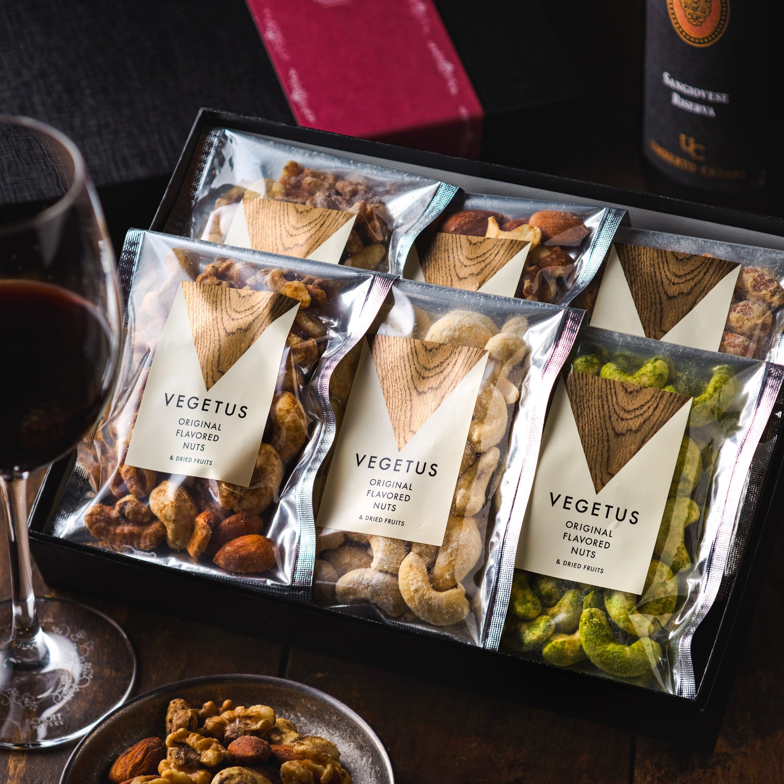 大人の晩酌に、上質な彩りを。プレミアムフレーバーナッツ 6種ギフト〈貼り箱入り〉
